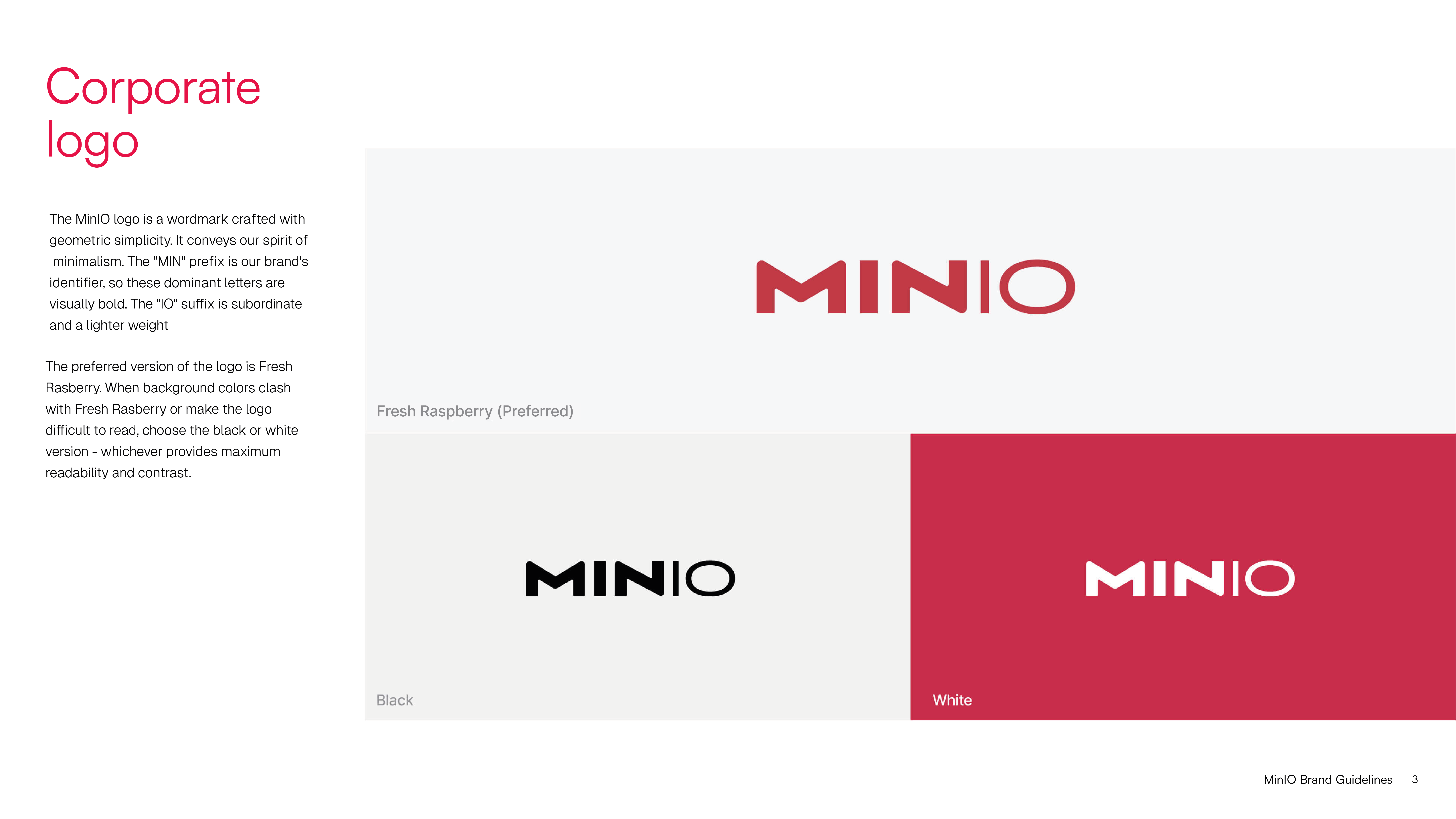 MinIO logo and wordmark are representations of MinIO. We have a few guidelines for correctly using our brand resources.