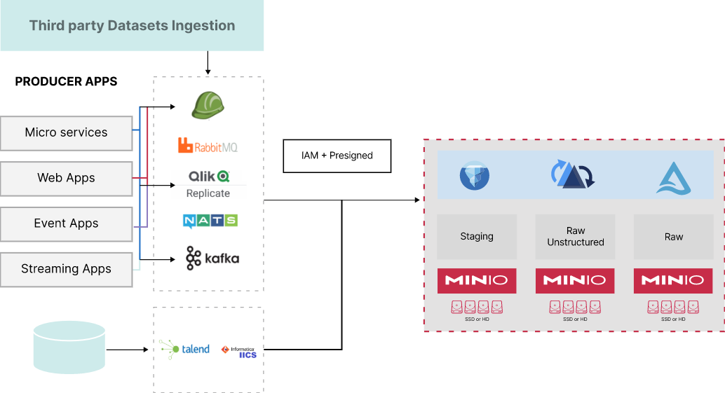 MinIO is built for this world and works out of the box with Kafka, Flink, RabbitMQ and a host of other solutions. The result is a datalake/datalakehouse that becomes the single source of truth and can expand seamlessly to EBs and beyond.
